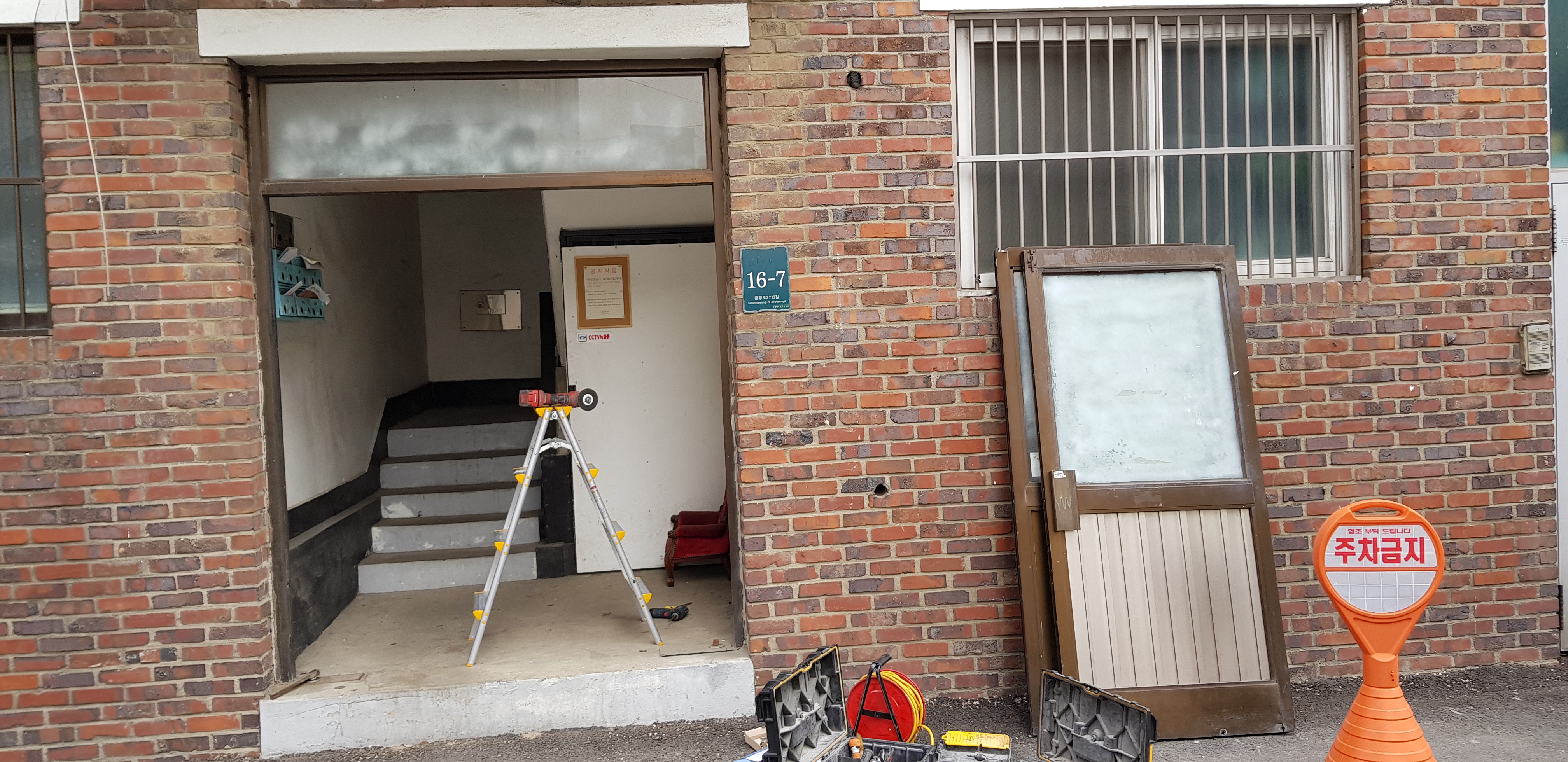 수십년된 알미늄도어 철거후 강화도어 신설