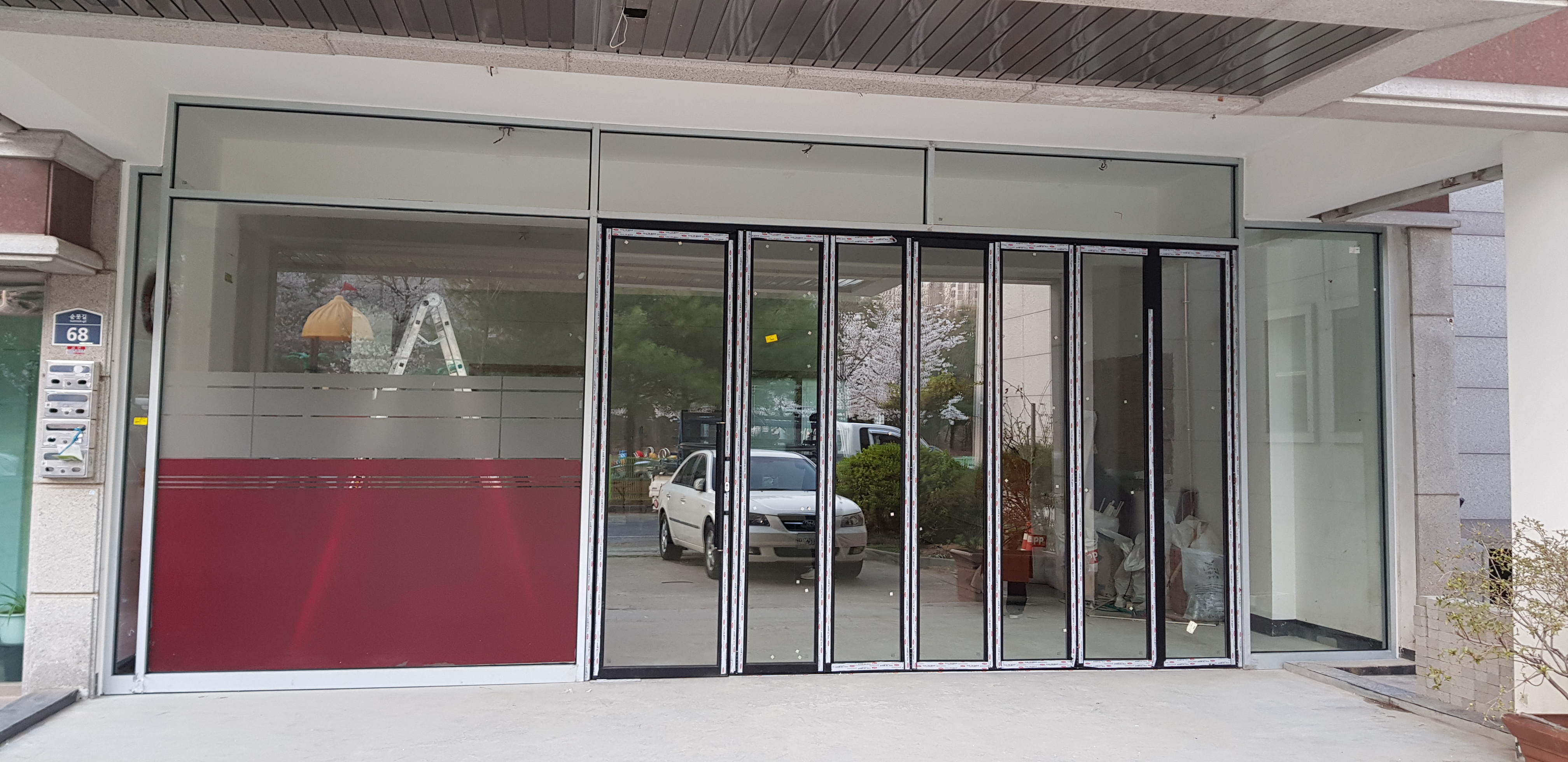 파주 1층 상가 폴딩도어, 강화도어, 통유리 설치